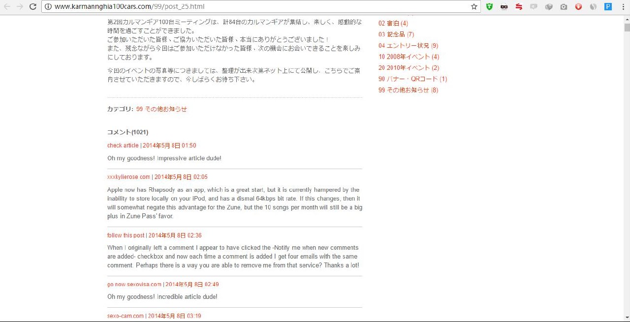 发现是个日文的页面,上面写的啥完全看不懂,倒是下面的评论我看明白几个,但是全是垃圾评论来的…… 我后面又随手多看了几个页面,发现全部来自一些不怎么打理的博客的留言板,而且外链出现的域名和giftcard没半毛钱关系,这就说明他的外链是用自动工具群发的,这种招数十年前可能有点用,现在基本行不通了。